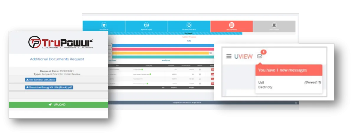 Energy auditors play an essential role in helping you understand the entire picture of your business or home’s energy condition. Properly conducted utility energy audits, followed by a solid implementation plan, often result in massive energy savings. TruPowur's process starts with an analysis of an initial data set we request from every partner, which is comprised of invoices and related contracts. Then communicates directly with the utility provider(s) to obtain historical usage data.